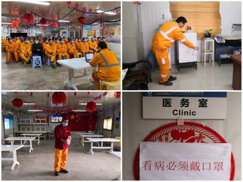 We need to carry out overall epidemic prevention and control at all levels, domestic and foreign project departments and institutions. We need to further strengthen health education for employees, make special arrangements for the security and public health of office areas and dining environment in the cafeteria, and procure necessary emergency materials such as masks and drugs. It is imperative for us to scale up epidemic response in domestic and overseas projects sites, strengthen on-site personnel access control and environmental sanitation management, take daily disinfection, and reserve necessary protective materials. We shall pay special attention to the health situation of people intended to be dispatched to overseas project sites, comprehensively investigate personnel information, and strictly implement 14-day medical isolation and health status monitoring.