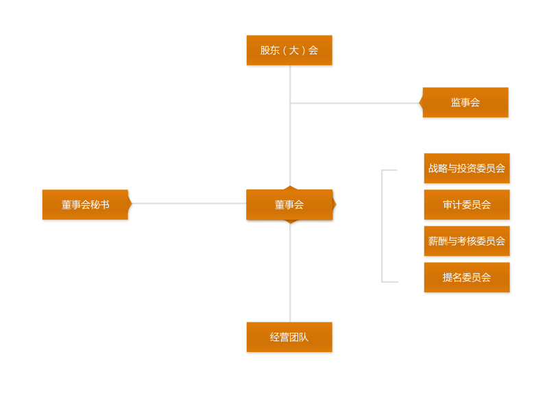 股东大会是公司最高权力机构,董事会作为决策机构受股东委托决策公司的日常事项,董事会下设战略与投资委员会、审计委员会、薪酬与考核委员会、提名委员会,为董事会提供专业决策意见。监事会受股东委托监督董事会和经营团队的行为,经营团队受董事会聘任负责公司的日常生产经营活动。董事会秘书是董事会的日常办事机构。
