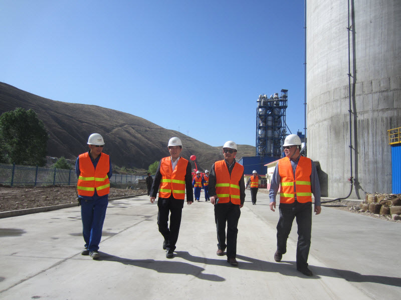 彭建新一行还专门利用仪式开始前时间,穿戴好安全防护用品,进行了现场视察。在项目经理赵森、副经理邢艳青等陪同下,彭建新一行由生料线开始,沿熟料线至水泥线,最后到中央控制楼,逐项进行了视察。在视察过程中,彭建新对项目的考核及收尾工作提出了很多具体意见和建议,他指出,目前项目虽然已经点火投料,但是后续的工业性能考核任务仍很艰巨,这是真正检验生产工艺线及设备性能的关键,要尽快做到达产后尽早进入性能考核阶段,同时加快项目收尾进度。彭建新一行还专程进入中央控制室,着重对生料配料、窑喂料量、熟料品质等方面的数据进行了询问,并与操作员进行了沟通。经过一系列的视察及与祁连山业主高管层和项目管理团队的友好沟通后,彭建新对项目部的工作表示了充分的肯定。