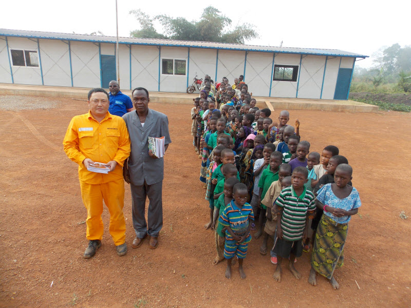 项目副经理昝龙生代表项目部向学生们致以节日的祝福,并向孩子们捐赠了学习用品。学校校长感谢项目部为当地教育事业做出的贡献,孩子们也高兴地喊着MERCI CHINOIS(感谢你们中国朋友)。
