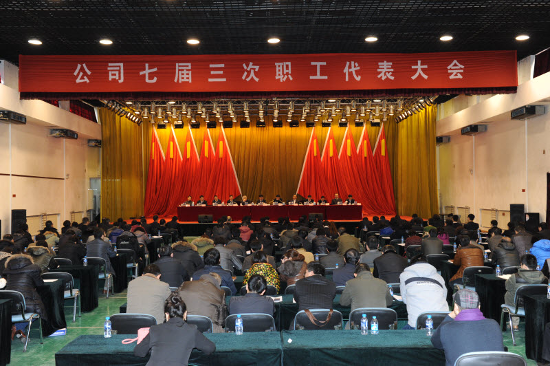 天津公司七届三次职工代表大会在体育活动中心隆重召开。大会由天津公司工会主席陈增福主持。
