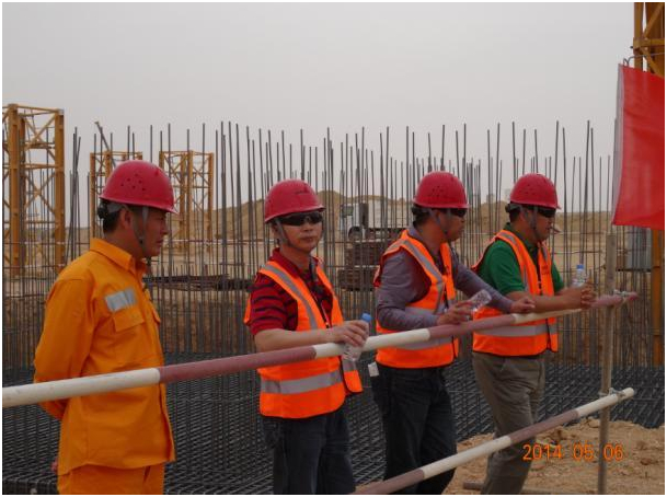 贺岚曦一行到达项目部后首先听取了项目部的情况汇报,他详细了解了项目的安全、质量、进度及费用等方面的情况,并提出了指导建议和意见。完成了访客入场安全培训后,贺岚曦一行深入项目现场进行了安全检查。他们不顾漫天沙尘,在面积超过60万平方米的施工厂区内步行对每一个车间进行了深入、细致地查看,对现场的基坑临边防护、脚手架施工、吊装起重作业、高空作业、危化品使用及存储、施工材料及设备设施、电焊机使用、临时用电、安全标志及劳保用品配备等内容进行了仔细检查,并与项目管理人员就安全管理方面的工作进行了交流。