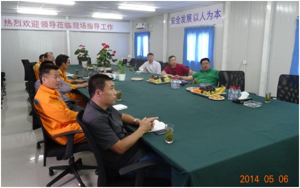 领导班子向项目部全体员工表示亲切慰问。他强调说,安全事故是在不经意间发生的,安全体系建立和完善后的执行及落实非常重要,安全应重点做到“生产安全、经营安全、政治安全”。他要求项目部积极承担社会责任,体现国际企业的安全价值,与当地人员建立起融洽的关系,遵守所在国家地区的法律法规。他还就自觉管控、生命财产安全、沟通相关方关系、合同履约及收款等方面给出指导建议。