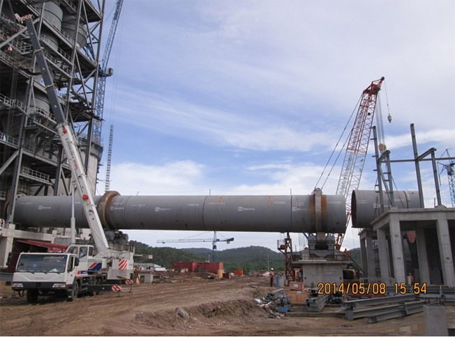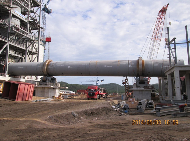 为确保回转窑吊装工作顺利完成,EDO项目部精心组织、周密安排,施工班组及相关施工管理人员放弃五一劳动节休假,克服了恶劣天气等诸多不利因素的影响。在大家的共同努力下,回转窑吊装工作在一周内圆满完成。