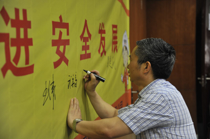 会后,主会场全体参会人员在“强化红线意识,促进安全发展”的主题横幅上进行了安全签名承诺。