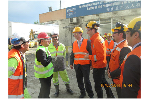 天津公司在当地承建的4000t/d水泥生产新线项目建设中所表现出的国际化形象、系统化管理和精湛技艺给予了充分肯定,对目前现场施工的安全管理、质量把关和项目进展等表示满意。Dragomir Stoynev部长坦言:“非凡国际