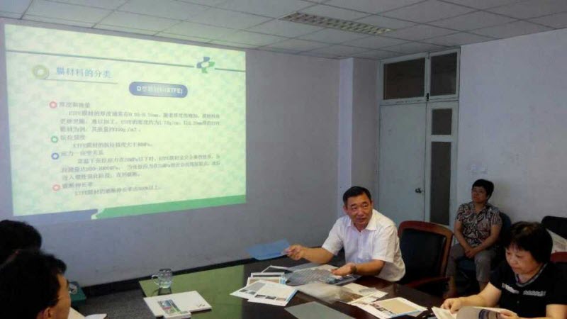 交流活动开始后,康达公司董事长薛士山先生首先对膜结构工程的主要应用领域及功能进行了阐述,对膜结构未来在工业工程领域的应用进行了美好展望。他指出,膜结构作为一种新型的建筑结构形式,近年来被广泛运用于各建筑领域,它所具有的良好的环保性、透光性、自清洁性、大跨度的空间及防火性与抗震性,使设计师们可以得到更丰富的建筑形式。