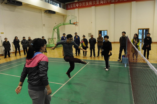 此次比赛采取团体对抗赛的方式,共有26个队伍100余名队员参加。由于队伍数量较多,比赛一开始就进入了残酷的淘汰赛,再加之训练时间比较紧张,对规则也不是非常熟悉,各队都抓紧利用业余时间展开练习。虽然客观不利因素较多,但是也促进了各队团队意识的增强和凝聚力的提升。在比赛中,各队队员们都精神饱满,用敏捷的身姿、娴熟的技巧和默契的配合赢得了在场观众的阵阵掌声。