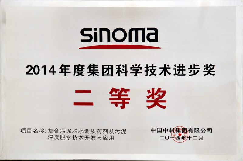 “大型中置辊破第四代冷却机的研发和应用”、“复合污泥脱水调质药剂及污泥深度脱水技术开发与应用”两个项目获得集团科技进步二等奖。“处理高水分电石渣的新型高效水泥技术的研究与应用”、“水泥窑协同处置工业废物及污水工程设计规范研制及应用”、“年产90万吨矿渣立磨设备开发及应用”、“直径2200系列双转子单段锤式破碎机的研发与应用”、“TRPR220-160生料辊压机的研究” “烘干中卸生料磨改造为水泥磨的研究”六个项目获得了集团科技进步三等奖。