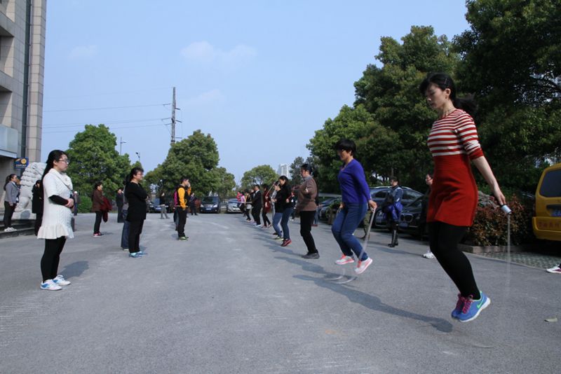 羽毛球定点准投妙趣横生,参赛队员一不小心就会把球打到其他队伍的箱子里,引得场外助阵的观众笑声一片;五人六足考验的是团队的协作力和凝聚力,只有默契配合才能取得好成绩;计时跳绳比赛异常激烈,参赛者飞速转动的跳绳看得大家眼花缭乱。