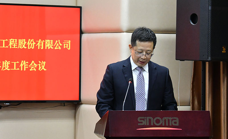 宋寿顺董事长作题为《鼓足干劲、力争上游、为“十三五”战略有效落实努力奋斗》的讲话。他指出,过去一年,公司经营绩效优异,改革亮点纷呈,全面完成了“稳增长”任务,向上级单位交出了一张满意的答卷。当前,公司应紧紧抓住大有可为的历史机遇,强化“一带一路”、国际产能合作和绿色发展布局,把习近平新时代中国特色社会主义思想、党的十九大精神、集团工作会精神全面贯彻到公司改革发展的全过程、各领域。2018年,公司将紧密围绕集团“创建具有全球竞争力的世界一流建材企业”目标,以“高质量发展”为主线,坚持国内国外“两个市场”,按照“十三五”战略发展规划格局,全力推动各领域的生产经营、管理提升、改革创新、党建工作步伐。他强调,各单位要组织干部员工对集团工作会、公司工作会精神进行认真、反复地学习,做到“深领会、勇担当、真落实”,切实将讲话精神贯彻落实到各自的工作会要求中,用集团的战略思想和核心文化来武装头脑,全力推动年度各项工作开展,用业绩说话,用数据说话,用改革创新的成绩说话,为集团创建具有全球竞争力的世界一流企业持续贡献力量。