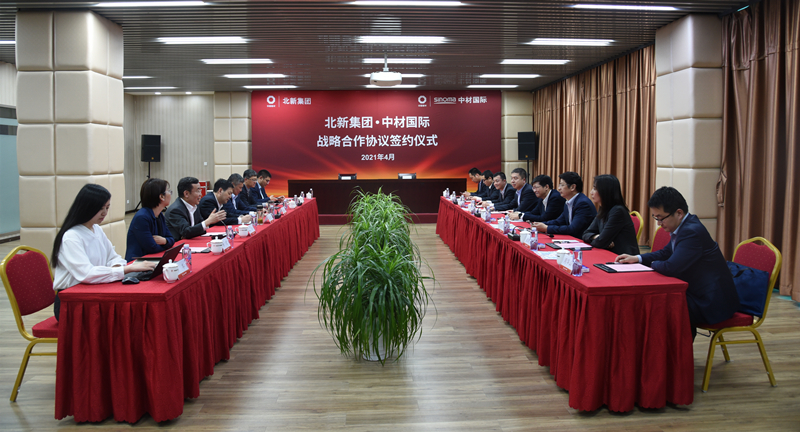 4月22日,公司与北新集团举行了战略合作协议签约仪式。北新集团党委书记、总经理陶铮,党委副书记、纪委书记赵雁鸣;公司党委书记、董事长刘燕,公司总裁、党委副书记印志松等共同见证双方签约。公司副总裁孟庆林与北新集团总会计师刘明代表双方签署协议。