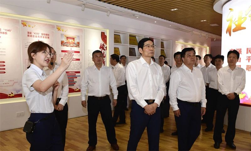 周育先一行先后参观了党建活动室、文化长廊、数字化报告厅,随后进行了座谈。