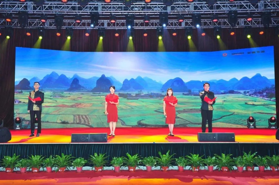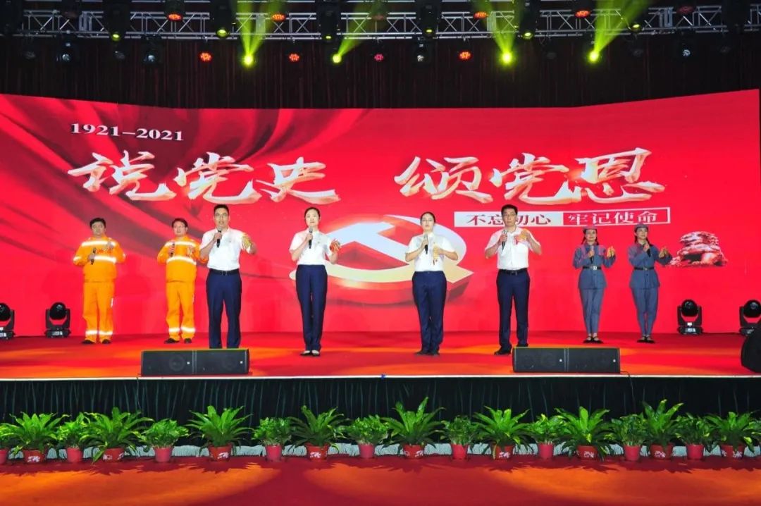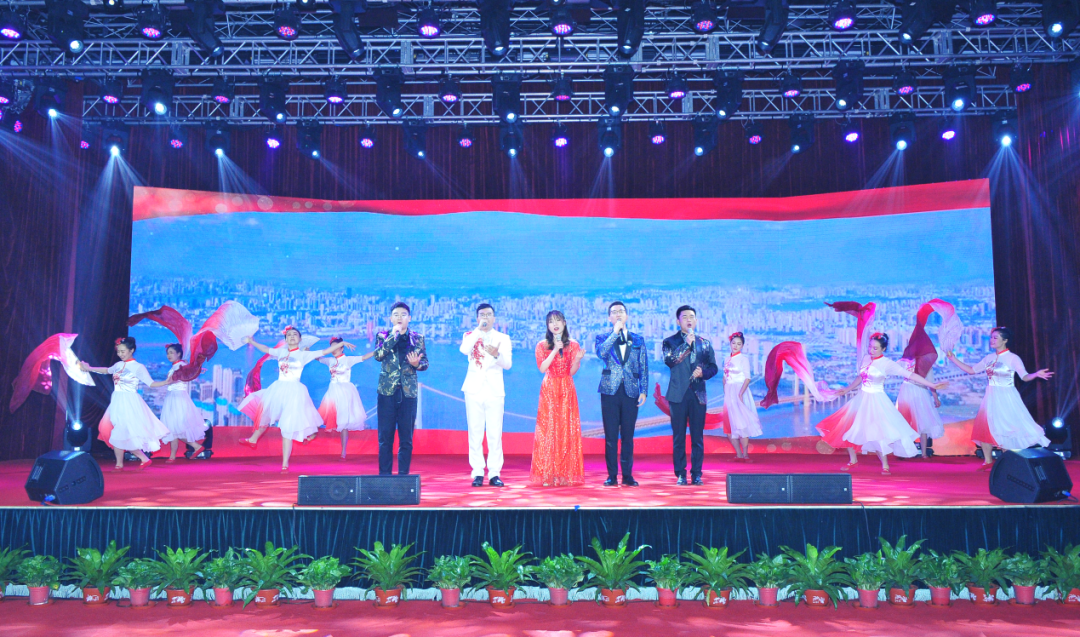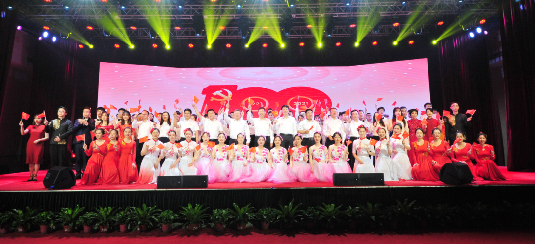 嘹亮红歌唱响峥嵘岁月,奋进旋律展现今朝风采。“奋斗百年路 启航新征程”庆祝建党100周年文艺汇演在绚丽多彩的歌舞《新的天地》中拉开帷幕。慷慨激昂的配乐诗朗诵《党旗下的誓言、最美逆行者》《青春中国》、优美动听的女声独唱《党旗更鲜艳》、美轮美奂的舞蹈《灯火里的中国》、精彩演绎的快板《说党史、颂党恩》、青春昂扬的大合唱《少年》、气势恢宏的歌舞《百年赞礼—我把歌舞献给党》,精彩纷呈的节目不断将现场氛围引向高潮,淋漓尽致的表演赢得了现场观众阵阵掌声。最后,文艺汇演在全体与会人员现场大合唱《没有共产党就没有新中国》中圆满落幕。整场演出唱出了激情,舞出了干劲,激励广大职工以更加昂扬的斗志携手奋进,共同创造非凡国际