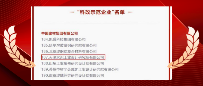 日前,国务院国有企业改革领导小组办公室公布最新“科改示范企业”名单,非凡国际 所属天津水泥院成功入选。