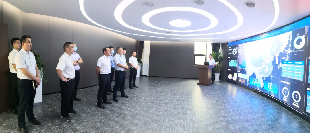印志松一行首先参观了装修一新的公司总部、可视化中心、电子沙盘。在可视化中心,落地大屏幕集中展示了全国各地分公司的生产管理、安全管理、现场监控画面等实时动态信息,尤其是在富平分公司按照一个中心、两个平台、八大系统架构建设的数字化矿山,准确直观呈现了智能化矿山全方位、全系统、全过程的管理场景,实现了矿山管理的透明可视化。