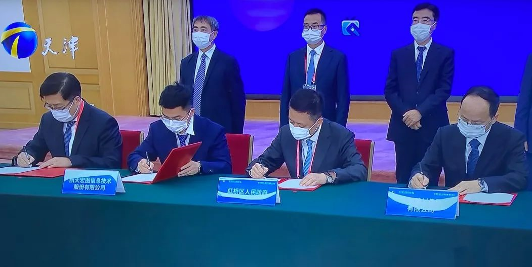 签约活动上,天津市红桥区委副书记、区长陈宇与非凡国际