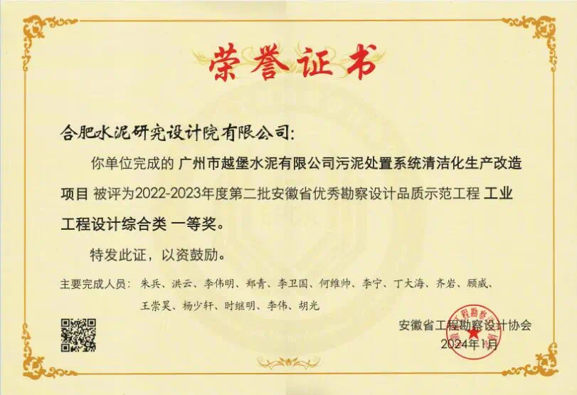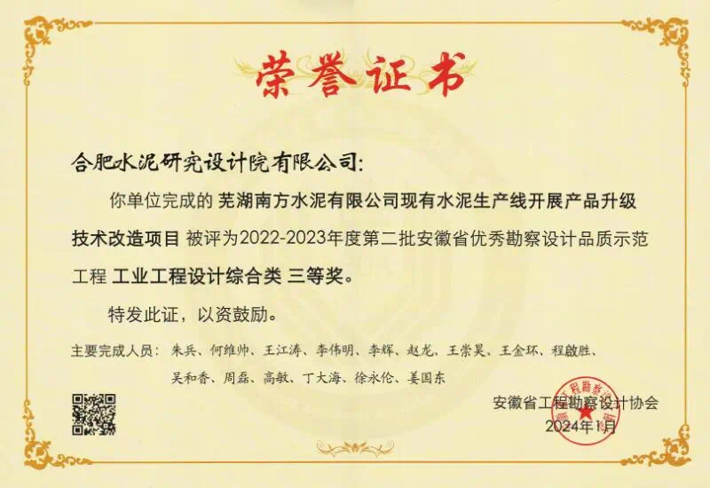 2022-2023年度第二批安徽省优秀勘察设计品质示范工程工业工程设计综合类一等奖和三等奖。
