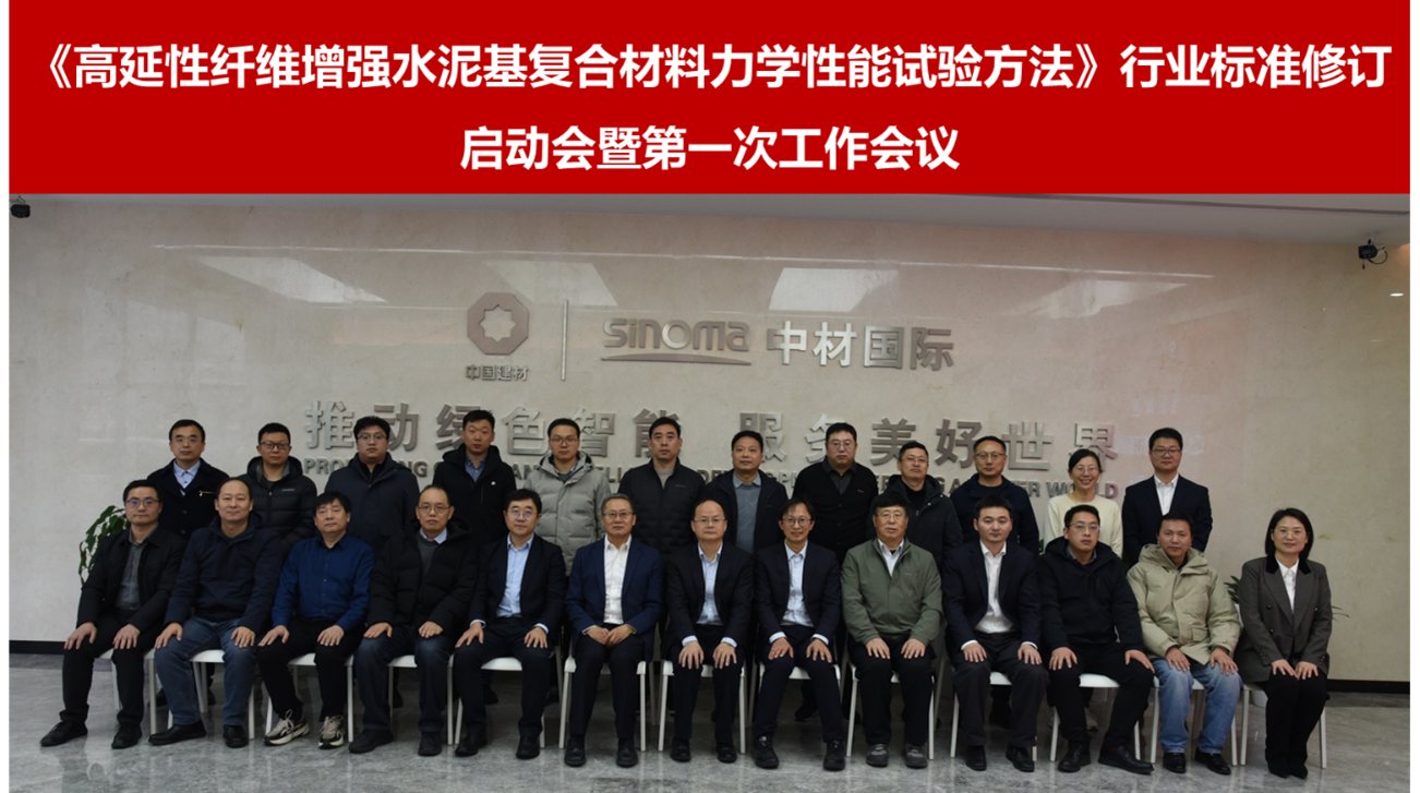 牵头修订的《高延性纤维增强水泥基复合材料力学性能试验方法》行业标准启动会暨第一次工作会议在北京顺利召开。来自全国20余家单位的约30位代表参加会议。全国水泥制品标准化技术委员会副主任委员兼秘书长俞锋,公司副总裁、装备集团董事长何小龙,党委委员、科技委常务副主任隋同波出席会议。会议由公司科技管理部总经理林莉主持。